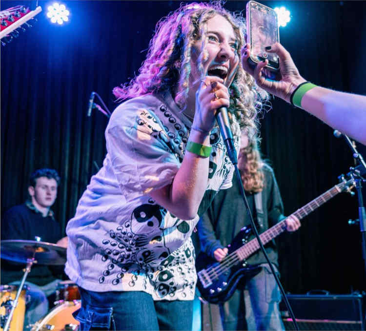 They are guided to produce something real — whether that’s an original song, a refined Rockquest set, or a live performance for family and friends.